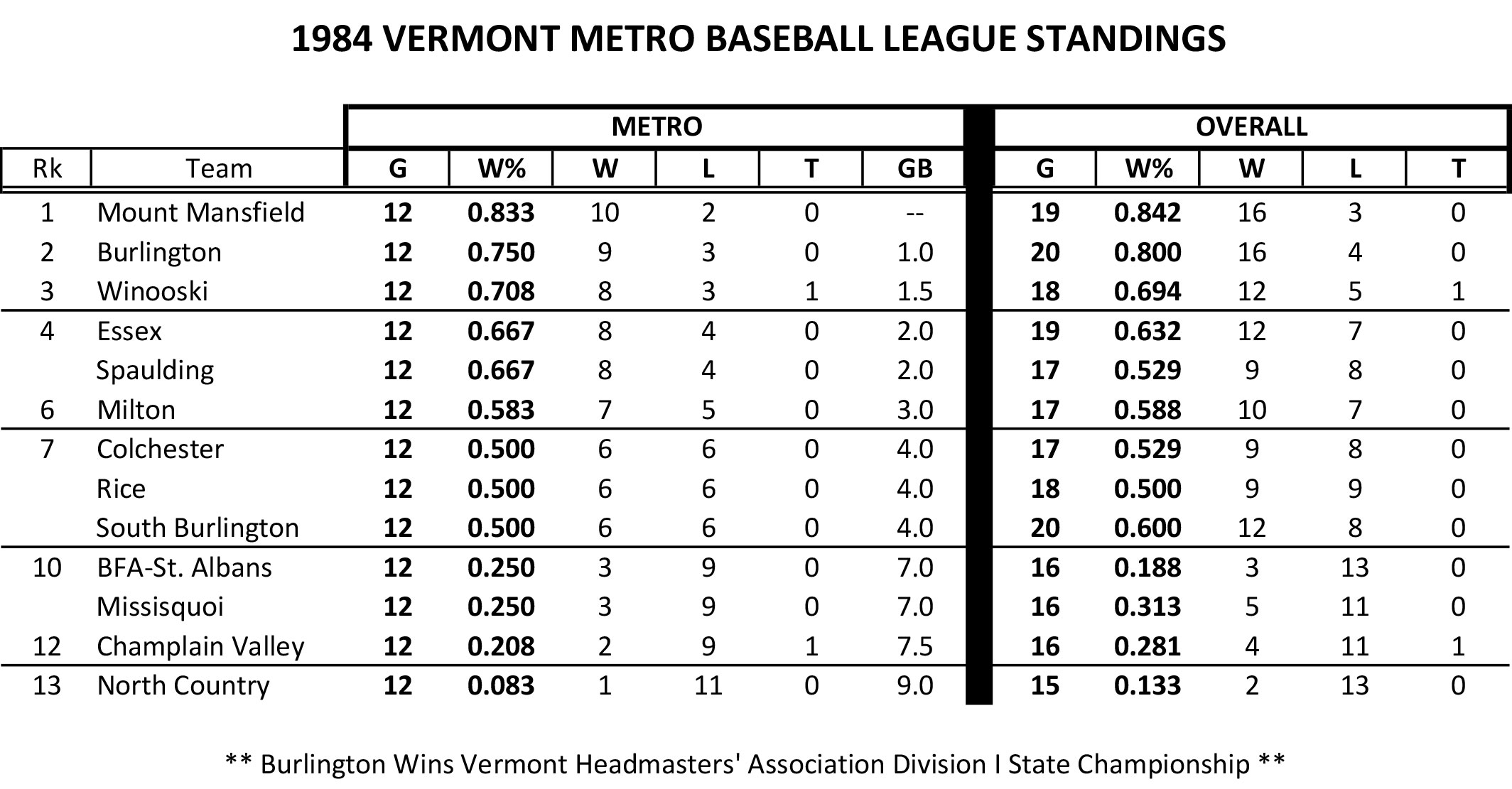 | Vermont Headmasters' Association Division I Tournament Playdown